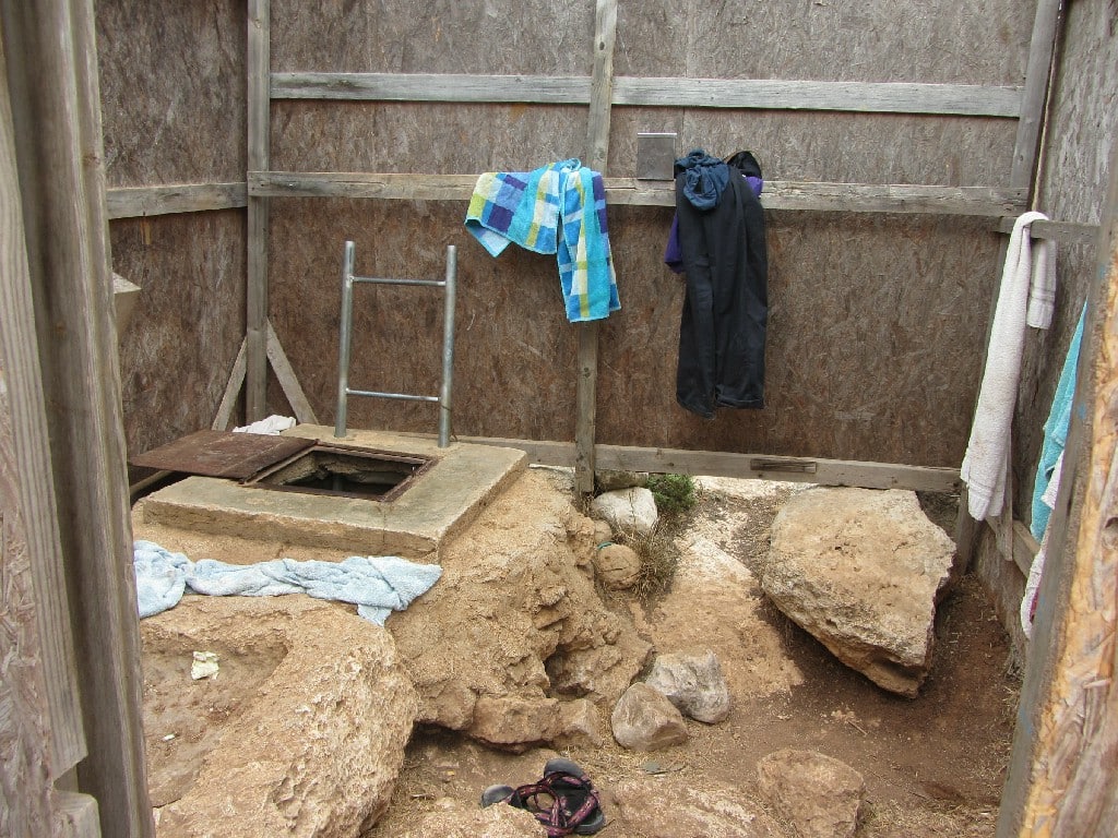 עומק המים אחרי הסולם, הוא כשני מטרים, הבור המשמש כמקווה מוקף מחיצות עץ.