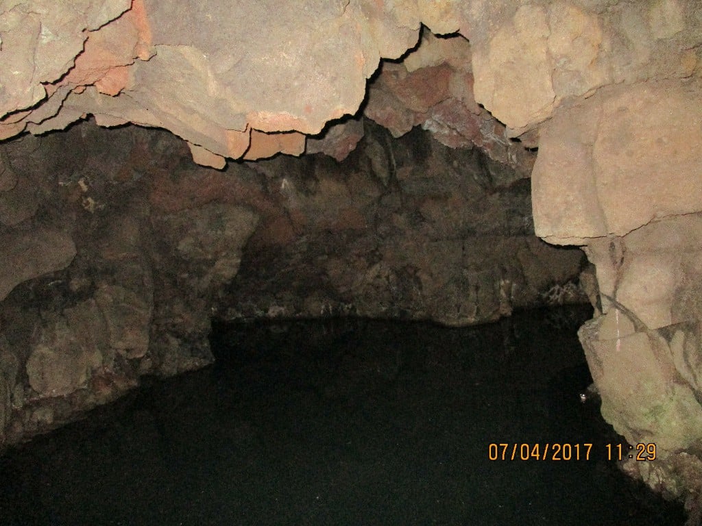 המעיין שוקק מים קרים וצלולים הנובע בתוך מערה חשוכה וגדולה שחצובה בסלע.