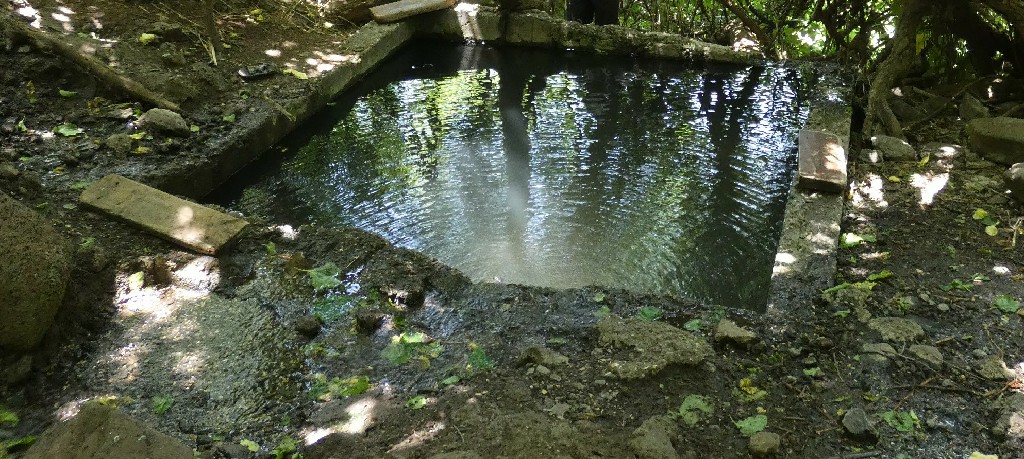 הבריכה בעומק מטר, ובקוטר של 3X3 מטר. מסביב עצים, ספסלים לישיבה וצמחיה, ובעיקר המון צל.