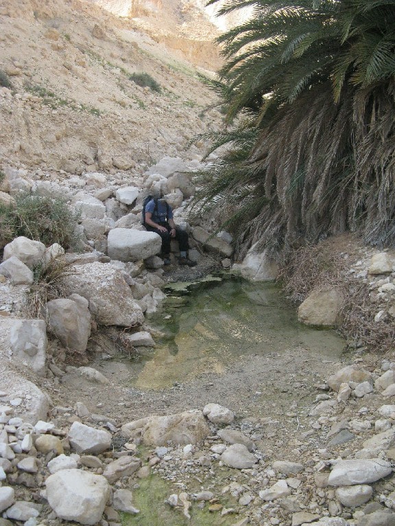 נפנה באחרונה וניסע בה כ -4 ק"מ עד למפגש עם דרך עפר שחורה בה נפנה ימינה וניסע בה עד סופה. נתקדם ברגל במעלה השביל השחור, עוד כמה מאות מטר עד למעיין ולעץ הדקל.